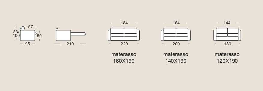 Imbottitura in poliuretano espanso con densità 35 kg nei cuscini di seduta e 25 kg sullo schienale.