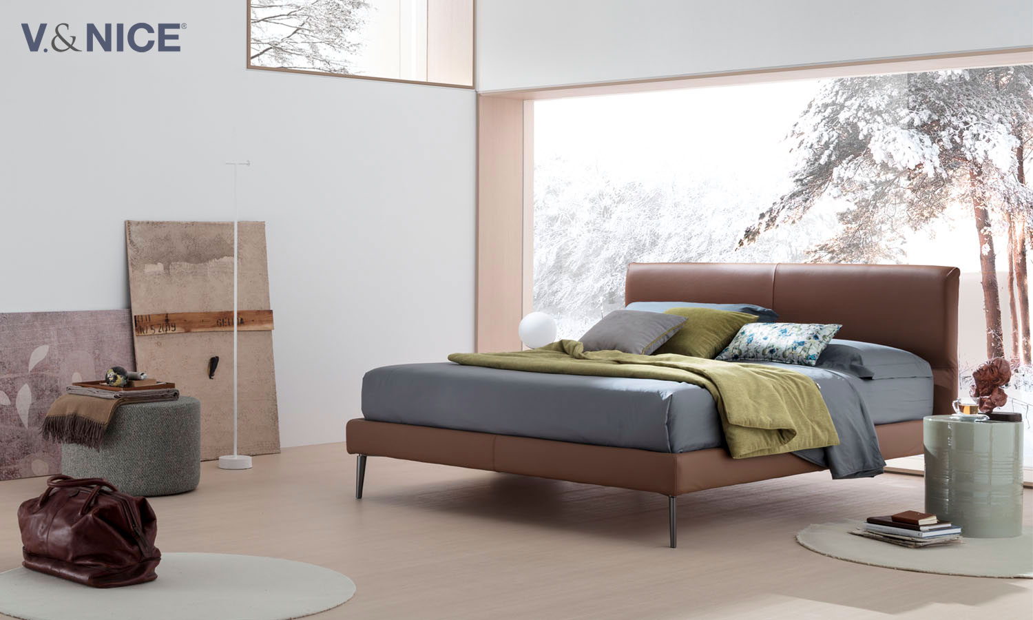 Le cuciture a vista impreziosiscono il rivestimento e sottolineano il design del letto, che si contraddistingue per la sua silhouette sottile ed ergonomica. Un arredo che accoglie il riposo, ma anche i momenti di relax.