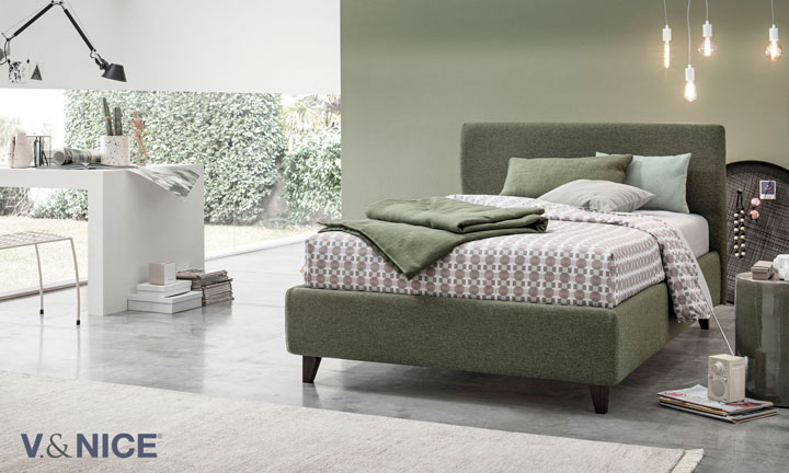 V.&NICE produce letti tessili sfoderabili: mettiamo a disposizione del cliente oltre 300 tipi di rivestimento per personalizzare la camera in ogni dettaglio.