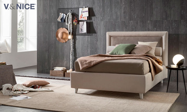 Chloe è un letto a una piazza e mezza adatto a giovani romantici. Forme sognanti, morbide che ti accolgono in ogni momento della giornata.