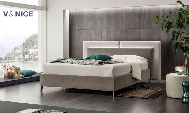 L’abbinamento di due testiere lo rende un letto matrimoniale moderno e di design: oltre alle dimensioni diverse, anche il rivestimento può essere di differenti tessuti. Per un letto che si distingue alla vista, ma anche al tatto.