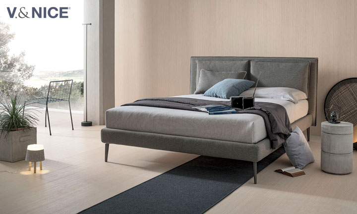 Il doppio cuscino sulla testata raddoppia il comfort. Un dettaglio di stile molto accogliente, l’ideale per chi ama circondarsi di cuscini e abbandonarsi nelle braccia di un letto morbido.