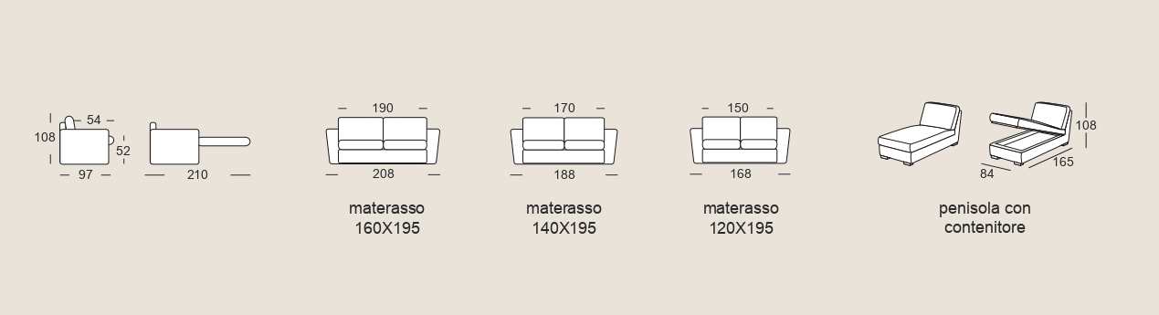 Composizione con penisola contenitore realizzabile solo con materassi da 17 cm.