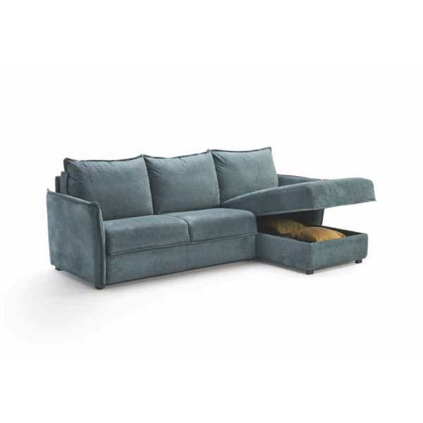 Lo schienale del divano Mojito presenta al suo interno uno spazio dove riporre i guanciali da utilizzare durante il sonno, donandovi uno speciale salvaspazio.