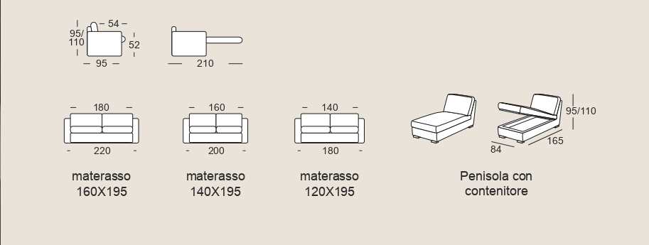 • Composizione con penisola contenitore realizzabile solo con materasso da 17 cm.